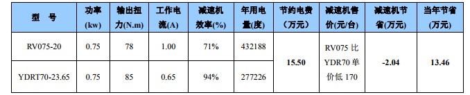 實(shí)例:清遠(yuǎn)某陶瓷釉線 120 臺(tái),用齒輪機(jī)替代 RV 方箱電費(fèi)節(jié)省實(shí)例。